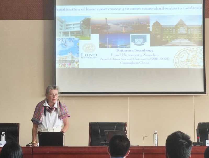 报告会上,苏尼·斯文伯格院士主要对照个人经验对激光光谱技术在环境、生态、和农业领域中的应用进行介绍,并针对光学检测和测距(激光雷达Lidar)技术被推广到生态学研究做了分享,以及一系列的合作的开展情况卡特琳娜·斯文伯格教授则激光光谱被证明是一项能有效检测和治疗恶性肿瘤的工具开始,介绍了激光光谱学在医疗届的应用情况。