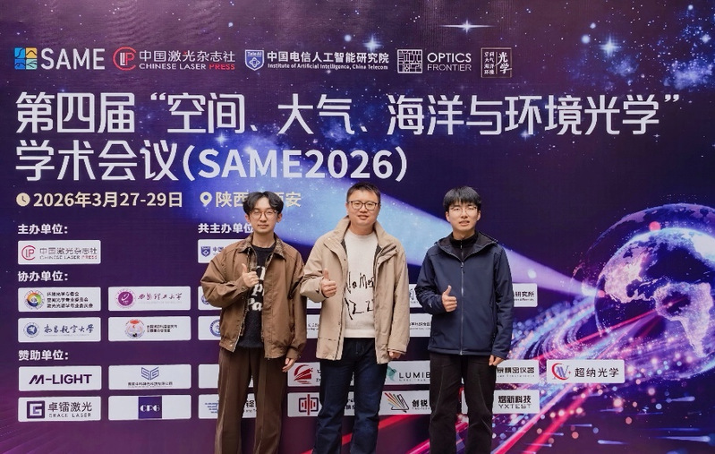 2026年3月27日-29日,第四届空间、大气、海洋与环境光学学术会议(SAME 2026)在陕西西安举办。本次大会是国内空天地海光学交叉领域的顶级学术盛会,由二十余位两院院士担任大会顾问,汇聚了光学、大气遥感领域众多顶尖知名专家学者参会。我院激光感知技术团队副研究员王龙龙、博士生姚成、硕士生孙廷鑫全程参会。